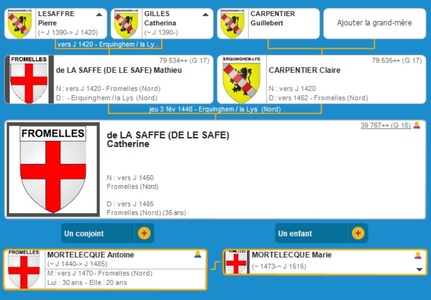 Catherine de LA SAFFE (DE LE SAFE) ( vers J 1450 Fromelles? -vers J 1485 Fromelles?)
