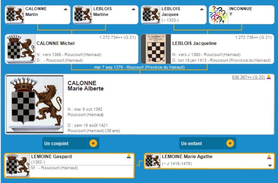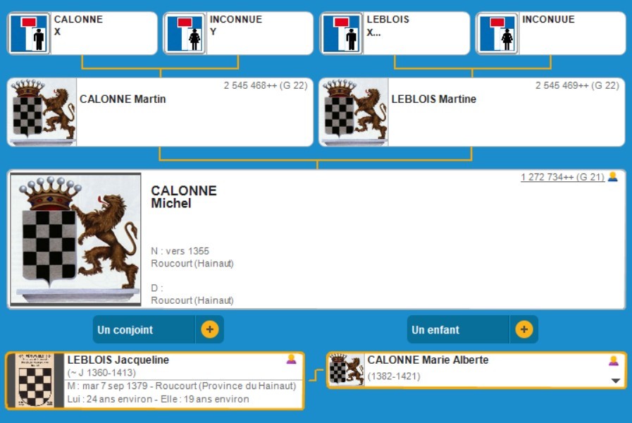 Jacqueline LEBLOIS (vers j 1360 Roucourt (B)- 18/1/1413 Roucourt ?) 7/9/1379 Roucourt (B)