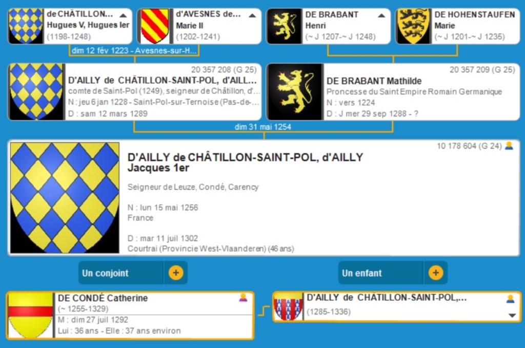 Jacques 1er D'AILLY de CHATILLON (1256 France? - 1302 Courtrai)