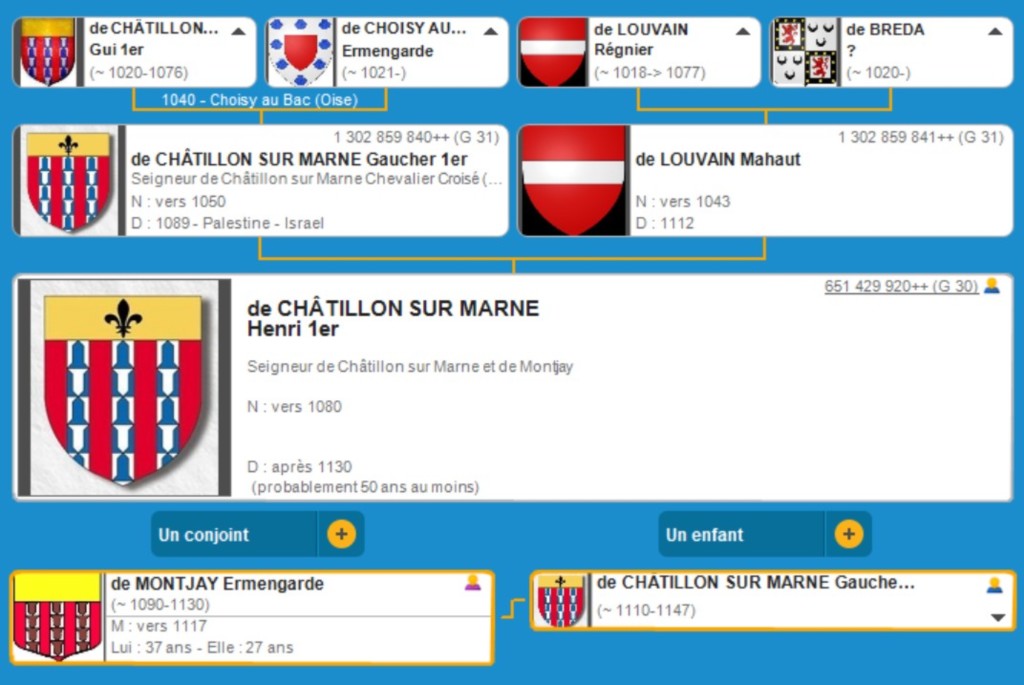 Henri 1er De CHATILLON/MARNE(~1080? - après 1130 ?)Ermengarde de MONTJAY ( ~1090- 1130 Châtillon/ Marne)