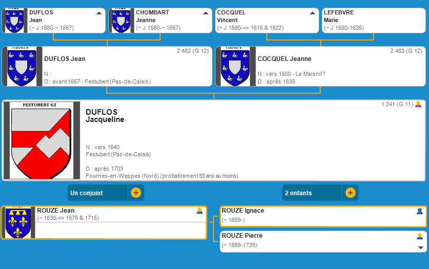 Jacqueline DUFLOS (vers 1640 Festubert ?- > 1703 Fourmes-en-Weppes)