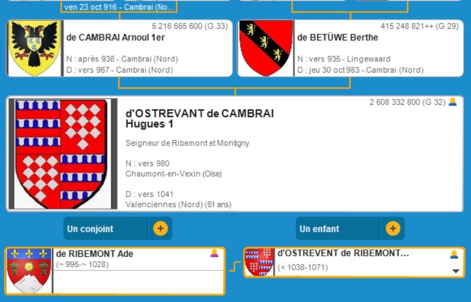 Hugues 1er d'OSTREVANT, CAMBRAI (vers 980 Chaumont-en Vexin - vers 1041 Valenciennes)