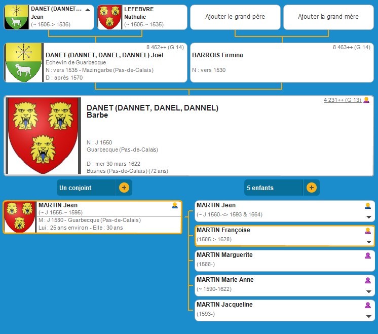 Nathalie LEFEBVRE (vers J 1505 Guarbecque ? - vers 1535?)