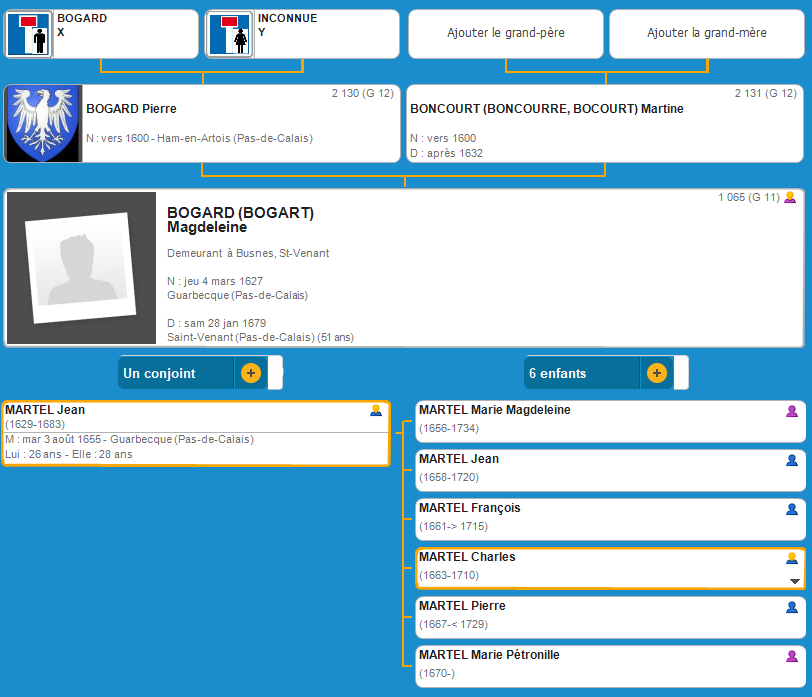 La Descendance de Magdeleine BOGARD Via MARTEL (G8-12), LEMORT(G6-4) Puis DUPONCHEL