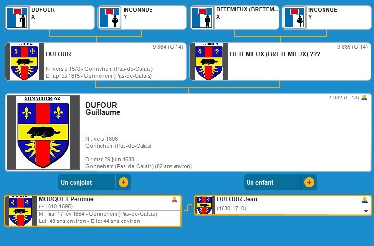 Pétronille DUFOUR  Via CREPIN(G7-9), LEROY(G5-3), WILLIART(G4-1) Puis DUPONCHEL