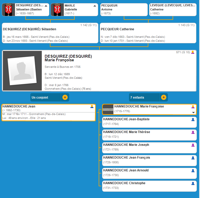 Marie Fr. DESQUIREZ (1689 St-Venant- 1766 Gonnehem)