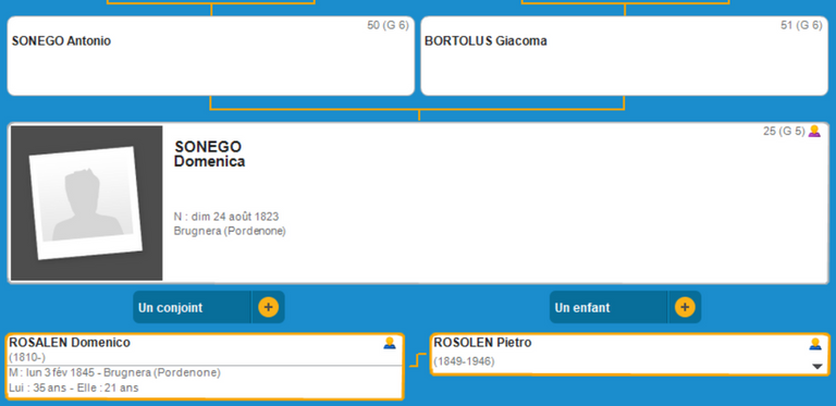 Domenica SONEGO (1823 Brugnera - ? ?)Domenico ROSALEN (1810 Gaiarine? - ? ?)