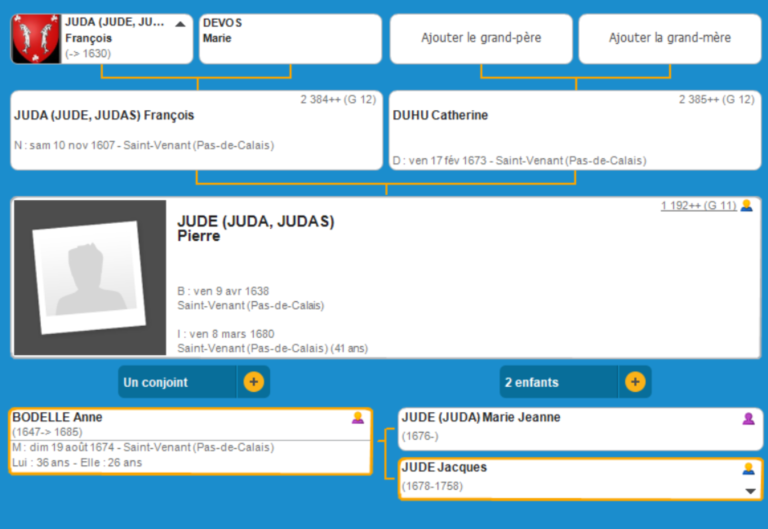 Pierre JUDA (JUDE, JUDAS) (1638 St-Venant- 1680 St-Venant)