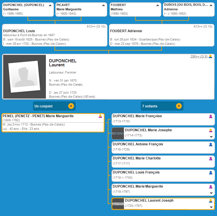 Descendance De Marie-Marguerite PENEL Via DUPONCHEL (?), GUERBAUT(6), Et DUPONCHEL