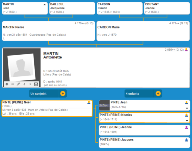 La Descendance De Antoinette MARTIN Via PINTE( ), PICAVET(26), DELMARE(7), LEMORT(4) Et DUPONCHEL