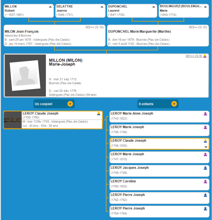 34 G9 ascendance de Marie-Joseph MIL(L)ON
