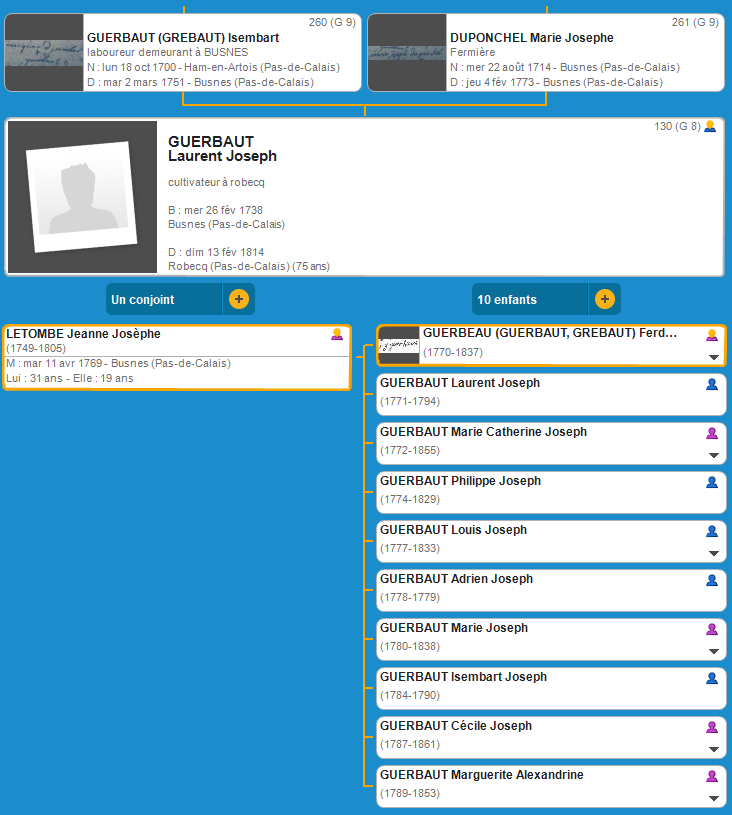 Ferdinande Joseph GUERBEAU (1770 Busnes- 1837 Guarbecque)