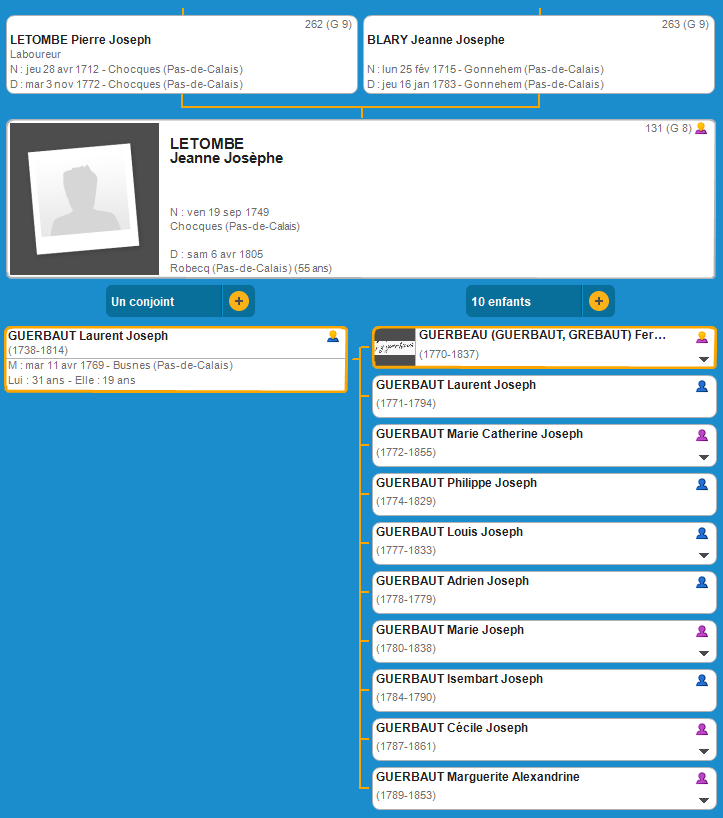 G 8 L'Ascendance de Jeanne Josephe LETOMBE