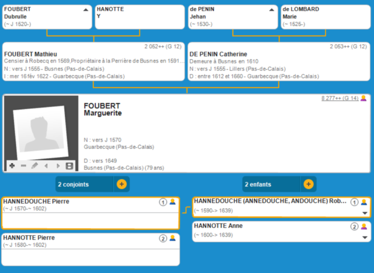 La Descendance Marguerite FOUBERTVia HANNOTTE(30), HANNEDOUCHE (30), LELIEVRE(??), TYPRET(10) Puis DUPONCHEL