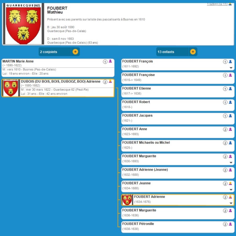 Mathieu FOUBERT (~1555 Busnes?- 1622 Guarbecque)