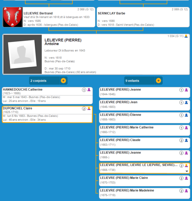 Antoine LELIEVRE (1623 Busnes?- 1711 Busnes)