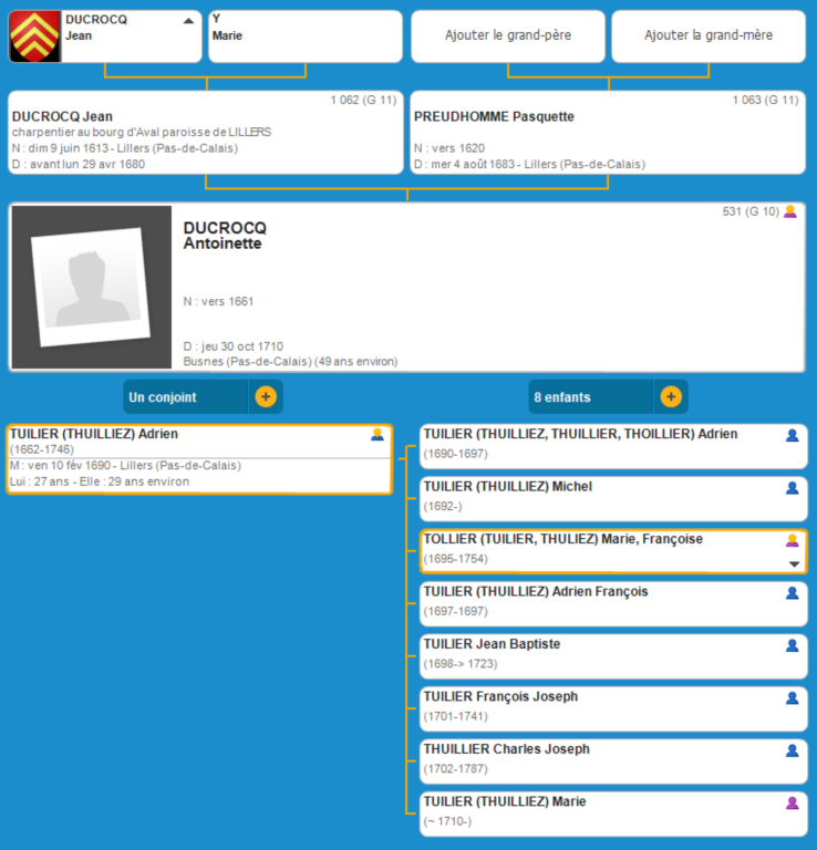 Adrien TUILIER (THUILLIEZ) (1662 Busnes- 1746 Berguette)