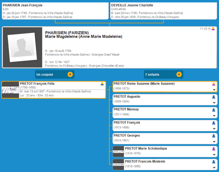 Reine Suzanne PHARISIEN (1745 Fontenois-La-Ville - 1873 Fontenois-Le- Château)