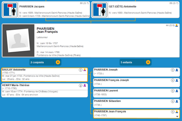 Jean François PHARISIEN (1707 Mailleroncourt-Saint-Pancras - 1786 Fontenois-La-Ville)