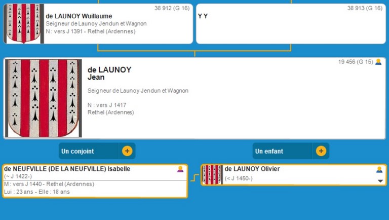 Mes plus anciens ancêtre sont de RETHEL dans Les Ardennes et de la noblesse : De LAUNOY et on remonte à la génération 22 !!!!!
