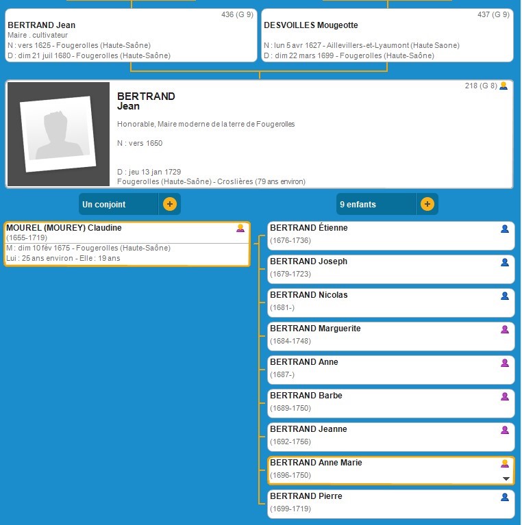 Anne Marie BERTRAND (1696 Fougerolles - 1750 Fougerolles )