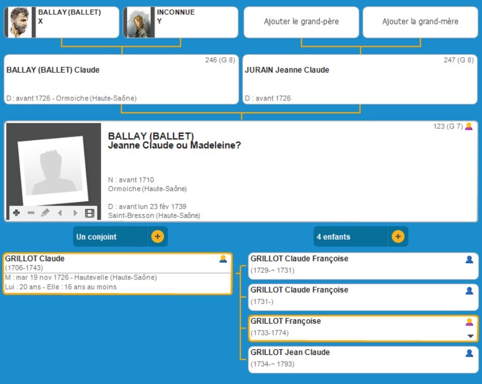 G 7 L'ascendance de Jeanne Claude BALLAY (BALLET)