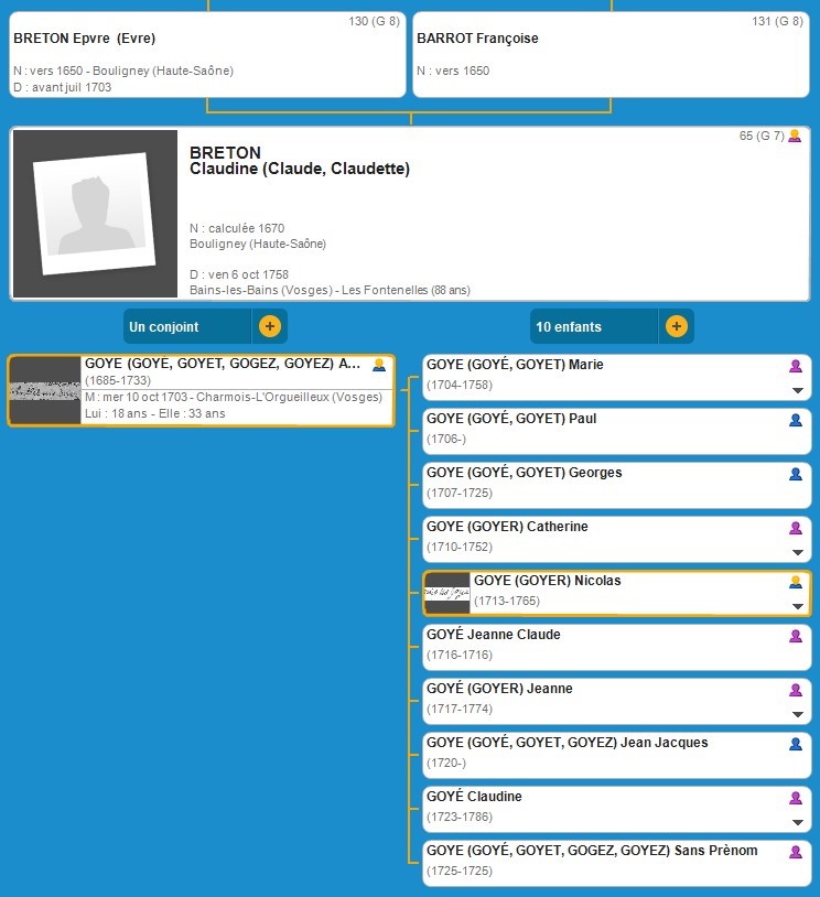 G7 Ascendance de Claudine (Claude, Claudette) BRETON