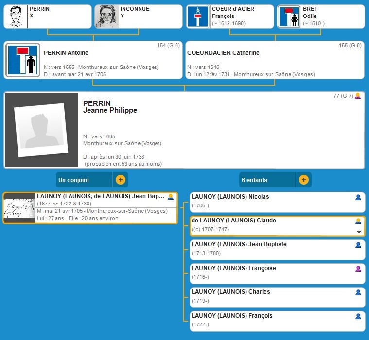 Jeanne Philippe PERRIN (vers 1685 Monthureux-sur-Saône -> 1738 Monthureux-sur-Saône)