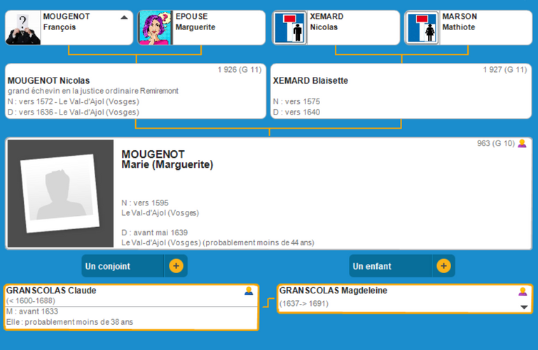 G 10 L'Ascendance de Marguerite MOUGENOT