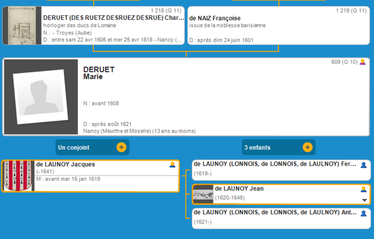Marie DERUET (DES RUETZ DESRUEZ DESRUÉ) (avant 1608 - après 1621 Nancy ?)