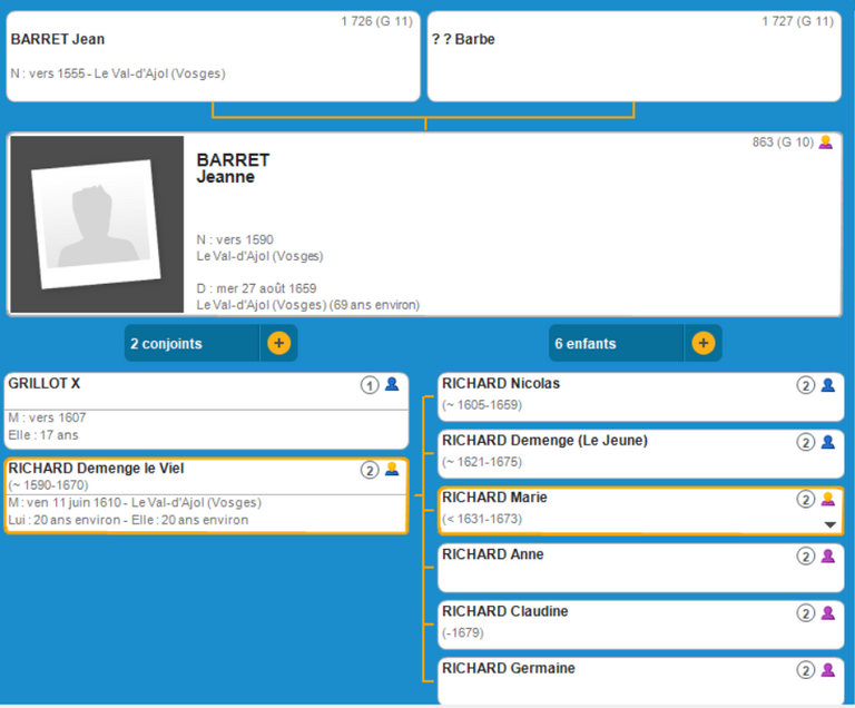 G10 L'Ascendance de Jeanne BARRET