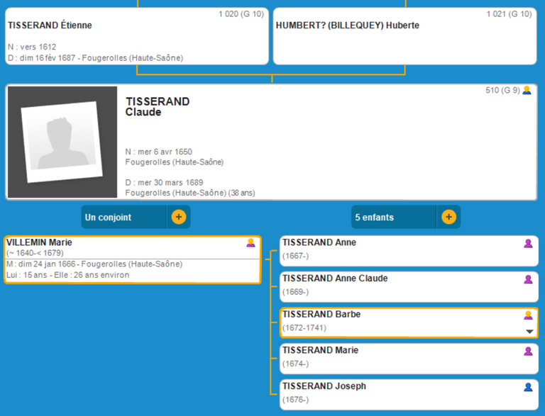G 8 L'Ascendance de Barbe TISSERAND
