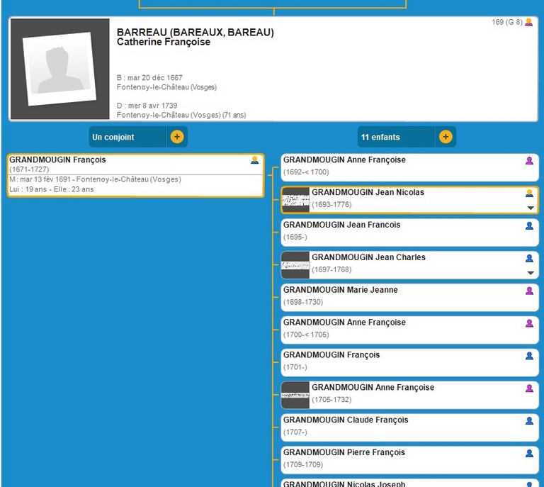 G8 L'ascendance de Catherine Françoise BARREAU (BAREAUX, BAREAU)