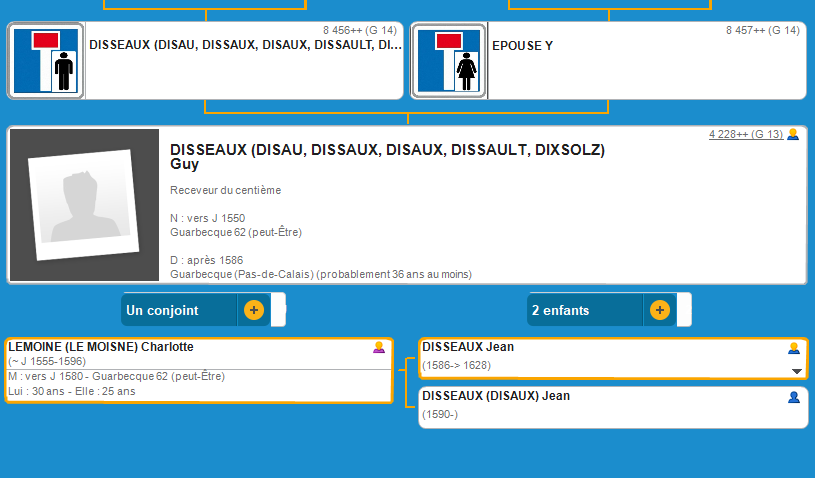 La Descendance Jean DISSEAUX via DUPONT (G9-19), DAMASSE (G6-5), LEROY(G5-3), WILLIART(G4-1) Puis DUPONCHEL