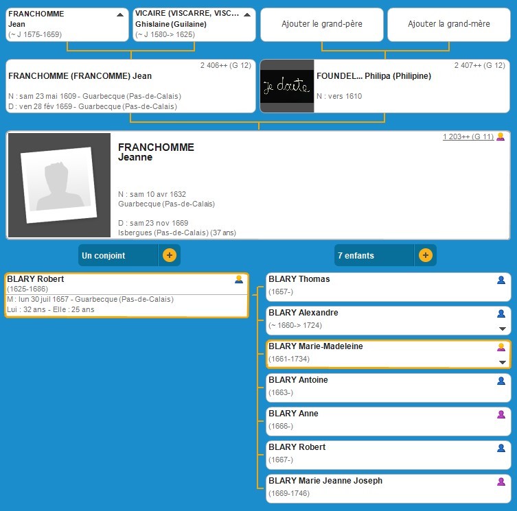 Jeanne FRANCHOMME (1632 Guarbecque - 1659 Guarbecque)