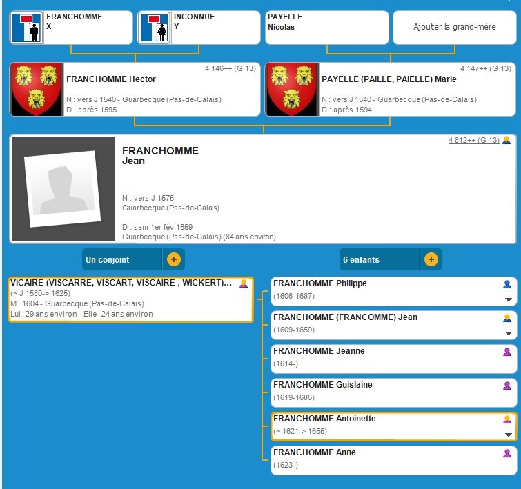 Jean FRANCHOMME (vers J1575 Guarbecque ?- 1659 Guarbecque)