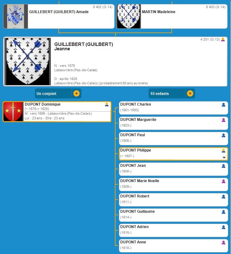a Descendance Marie FOUBERT Via BRO(G)N(I)AR(T-D)(G10-7), BLARY(G10-3), LETOMBE(G8-10), GUERBAUT Et DUPONCHEL