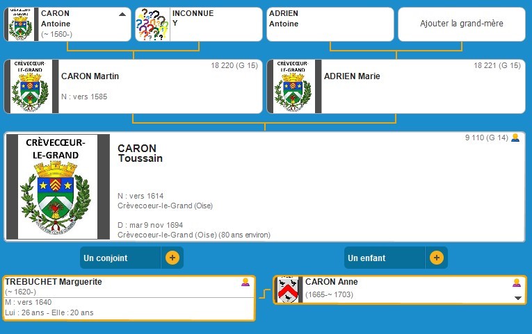 Toussain CARON (vers 1614 Crévecoeur-le-Grand? -1694 Crévecoeur-le-Grand)