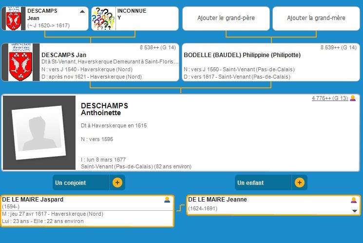 La Descendance Marguerite DESCAMPS Via DE LE MAIRE(G12-36),Via BODELLE(G11-29), JUDE (G8-16), WILLIART (G4-1) Et DUPONCHEL