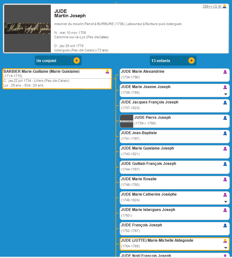 16 G 8 L'Ascendance de Marie Aldegonde JUDE