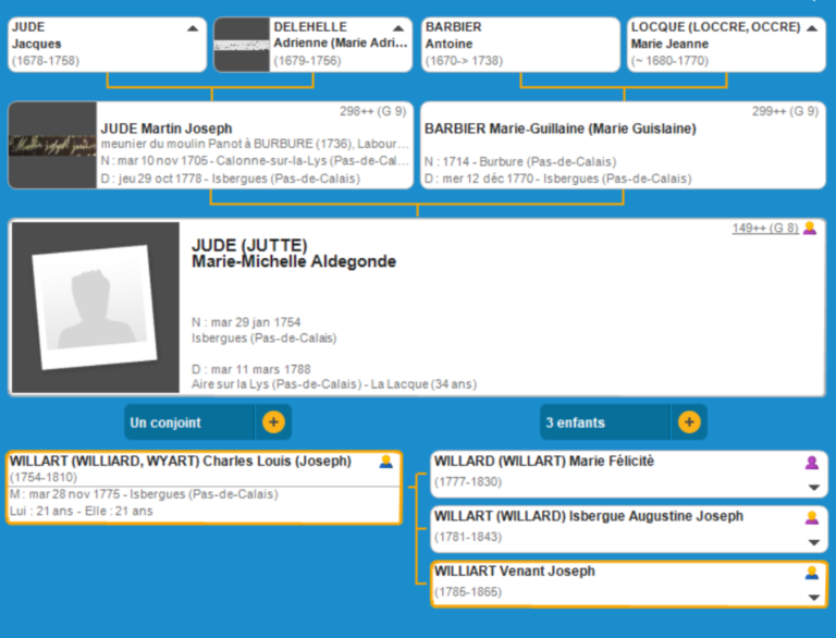 La Descendance De Marie Aldegonde JUDE Via WILLIART, DAMASSE(X), LEROY, WILLART, Et DUPONCHEL