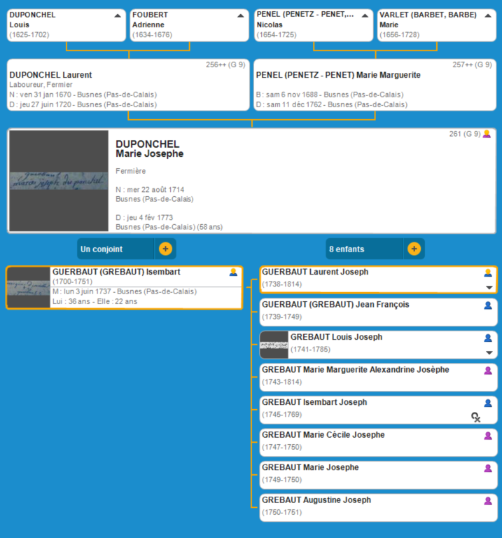 22 G 9 Ascendance de Marie J. DUPONCHEL