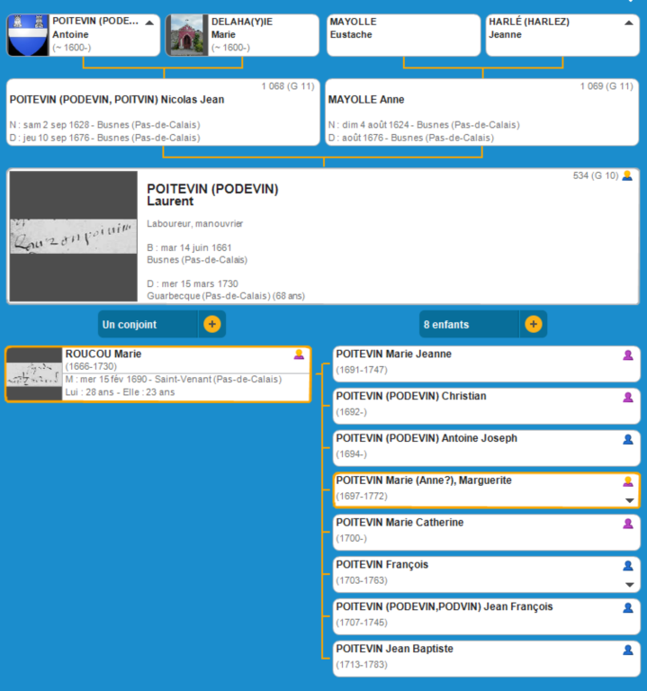 Marie (Anne?), Marguerite POITEVIN (1697 St-Venant- 1772 Guarbecque)