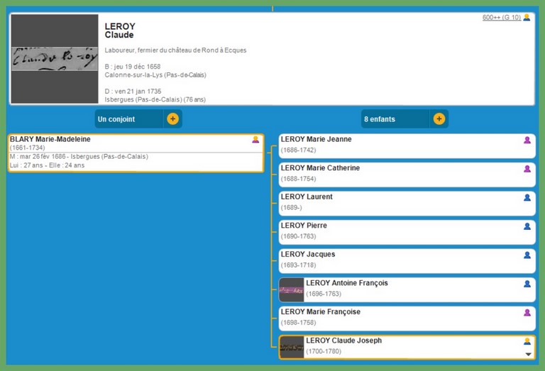 Jeanne LEROY (LE ROY) (vers 1600 ?- 1670 Calonne-sur-la Lys)