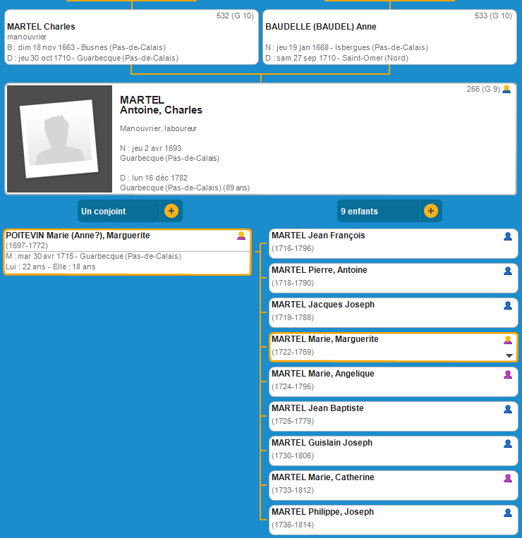 Antoine Charles MARTEL (1693 Guarbecque- 1782 Guarbecque)