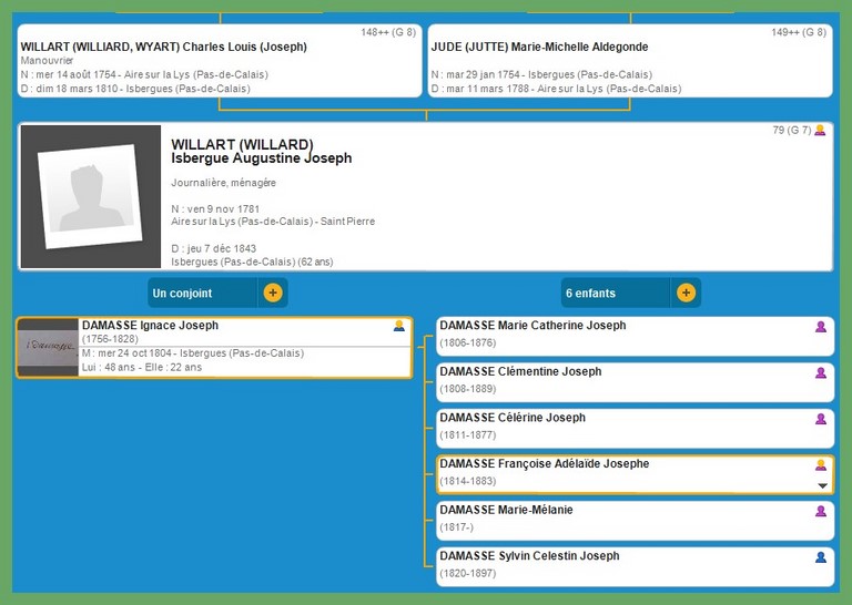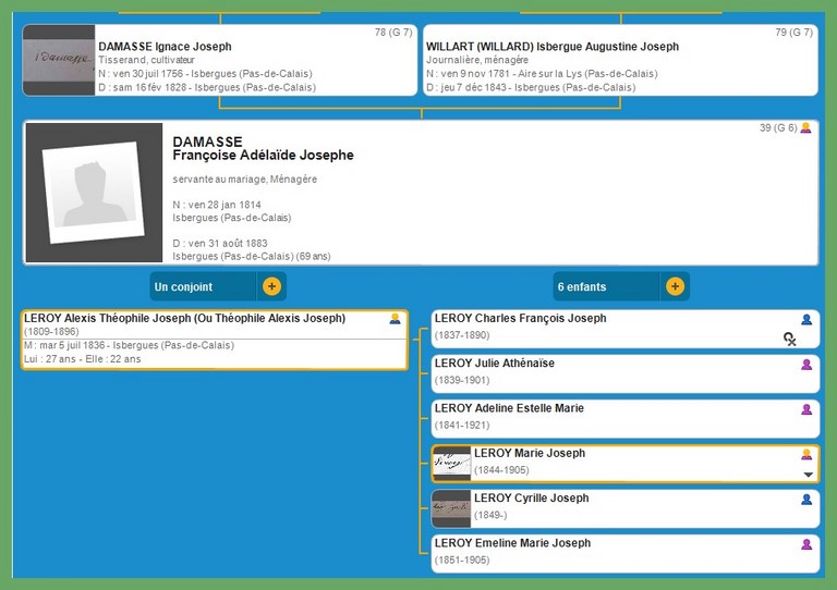 Françoise Adélaide Josephe DAMASSE (1814 Isbergues - 1883 isbergues) Lien PDF À Venir :