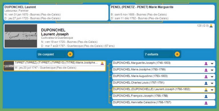21) François Joseph DUPONCHEL, auteur de la branche ainée qui suivra.