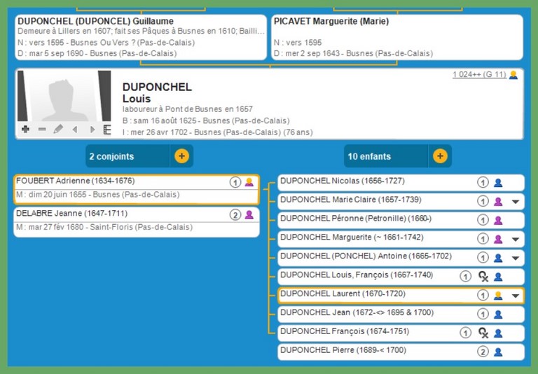 Le premier des DUPONCHEL retrouvé semble être né vers 1480 à Busnes ou sa région.