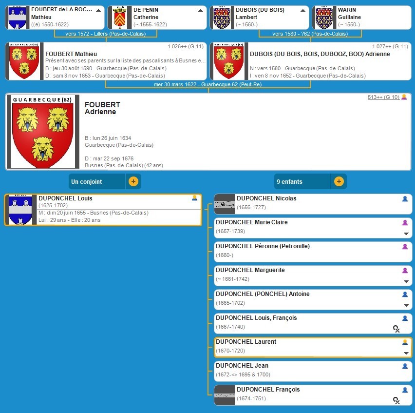 La Descendance Marguerite FOUBERTVia HANNEDOUCHE(30), LELIEVRE(??), TYPRET(10) Puis DUPONCHEL