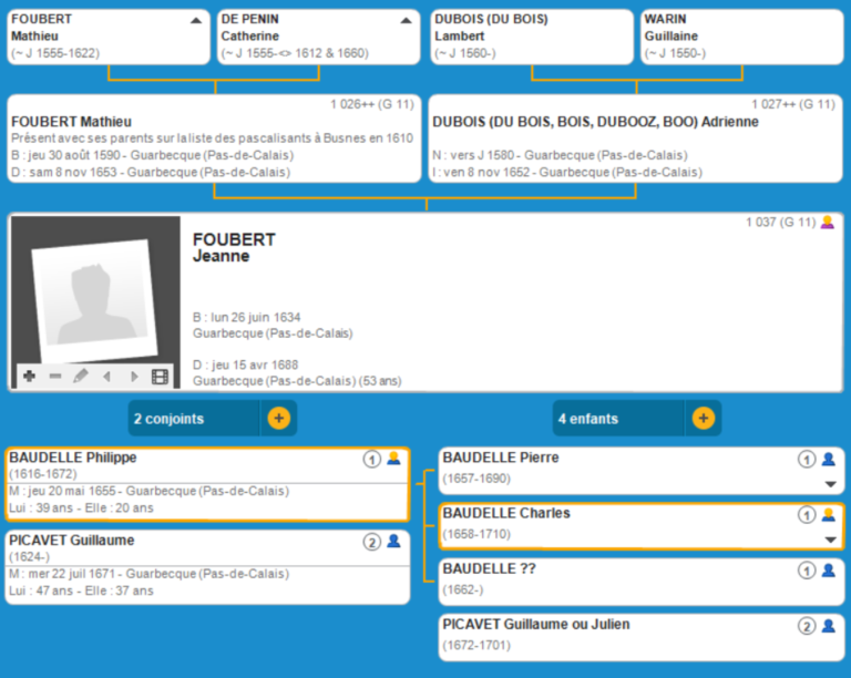La Descendance Jeanne FOUBERT Via BAUDELLE(21), TYPRET(10) Puis DUPONCHEL